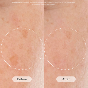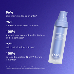 **4-week independent clinical study of 30 subjects who used Exfoliation Night 3 nights per week, as measured at the overnight time point.