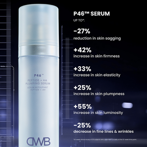 P46™ Serum: Water/Aqua/Eau, Propanediol, Butylene Glycol, Squalane, Glycerin, Capryloyl Glycerin/Sebacic Acid Copolymer, Tripeptide-1, Palmitoyl Tripeptide-1, Acetyl Dipeptide-1 Cetyl Ester, Palmitoyl Tetrapeptide-7, Beta-Glucan, Polyglutamic Acid, Sodium Hyaluronate, Ethylhexyl Olivate, Sodium Lactate, Polyacrylate Crosspolymer-6, Phenoxyethanol, Pentylene Glycol, Ethylhexylglycerin, Sodium Acrylates Copolymer, Sorbitan Laurate, Sodium Phytate, Polyglyceryl-4 Oleate, Citric Acid, Hydroxyethylcellulose, Dextran, Carbomer, Caprylyl Glycol, Coco-Glucoside
