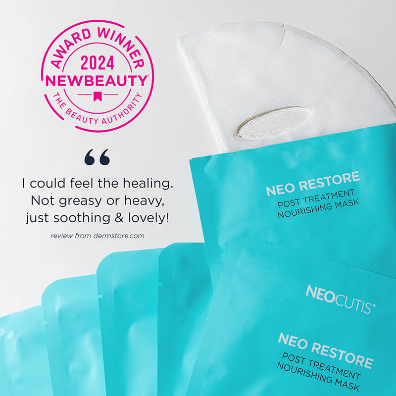 The first-ever NEOCUTIS post-treatment biocellulose sheet mask is packed with proprietary peptides, hyaluronic acid, and key ingredients to soothe, brighten, and retexturize while improving the look of skin.1