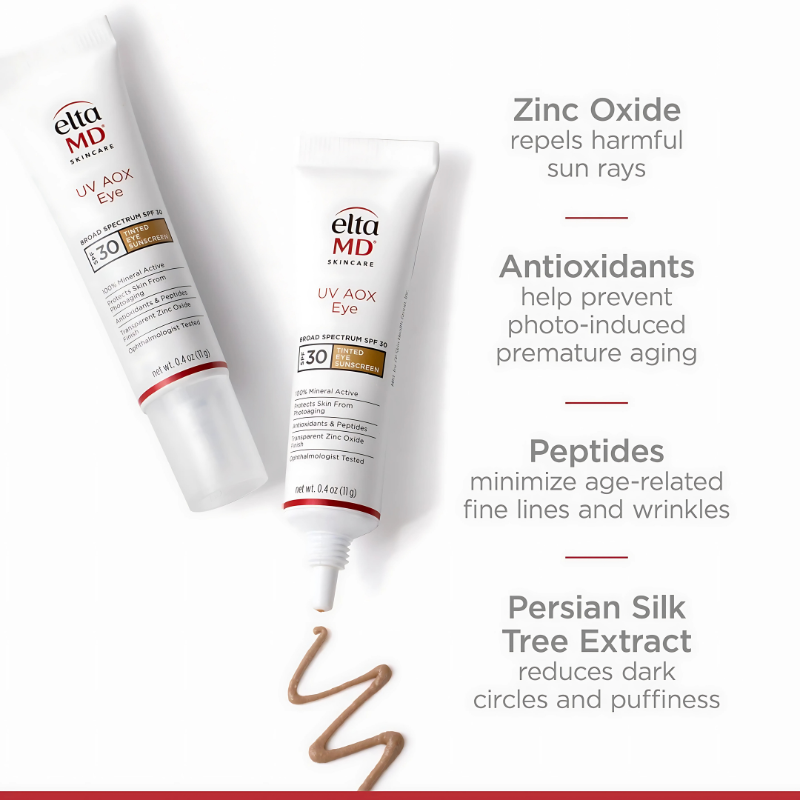Lightweight and antioxidant-rich UV AOX Eye Broad Spectrum SPF 30 protects the delicate skin around the eyes, minimizes signs of fine lines, and brightens dark circles. The 100% mineral, non-irritating, hydrating formula is enriched with a powerful mix of skin-rejuvenating antioxidants to repair and strengthen the skin barrier, for more youthful & healthier looking skin. This tinted SPF is shown to visibly reduce signs of premature aging and help correct dull & uneven skin tone. The undereye overachiever can be worn alone or under makeup.